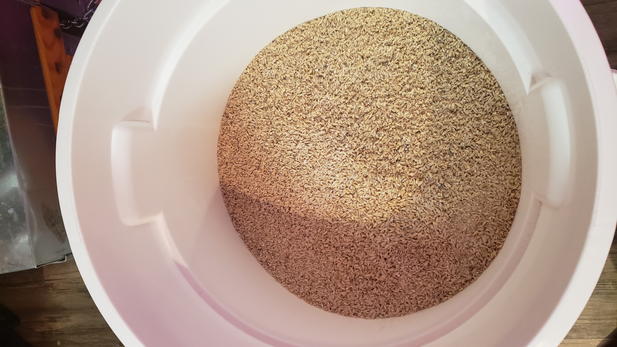 So, 40 pounds are going into the bucket.. That's a lot of barley. 40 pounds of rice took much less space