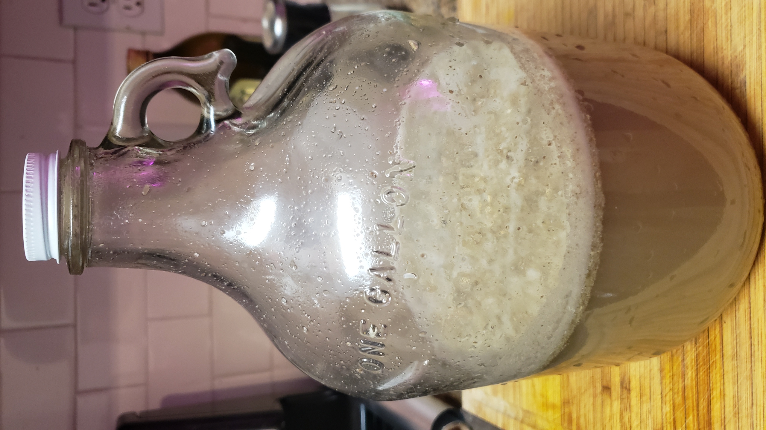 Dec 30: Fermentation is going strong. Fermenter bucket is warm to touch, and there are some bubbles; Grain keeps rising to the top; does the culture do something to make it lighter? Or do the rising bubbles push it up?