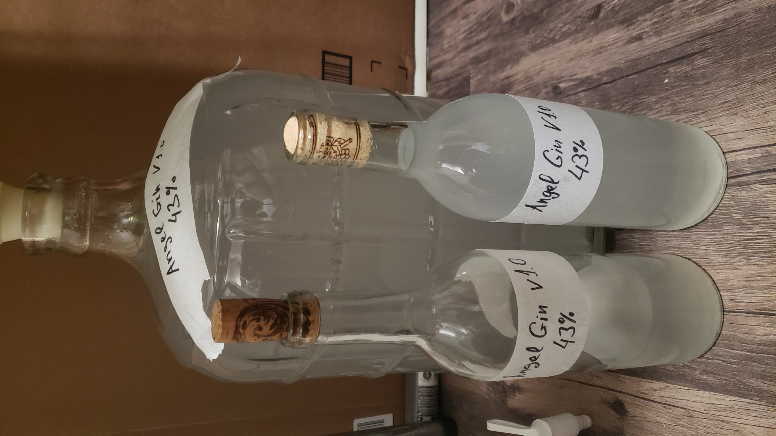 I knew it is very common with homemade gins; when it came out of the still, it was 75% ABV and completely clear. But, as i watered it down to 43%, the essential oils became no longer soluble, and it acquired a more traditional moonshine appearance.