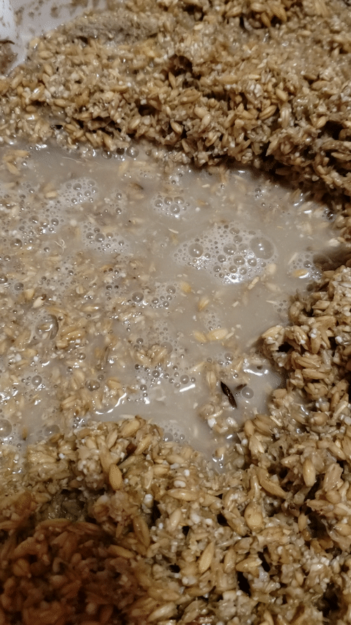 A couple hours later I checked inside the bucket; To my surprise, barley started rising to the top