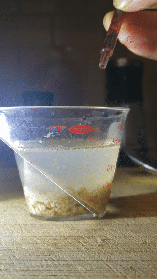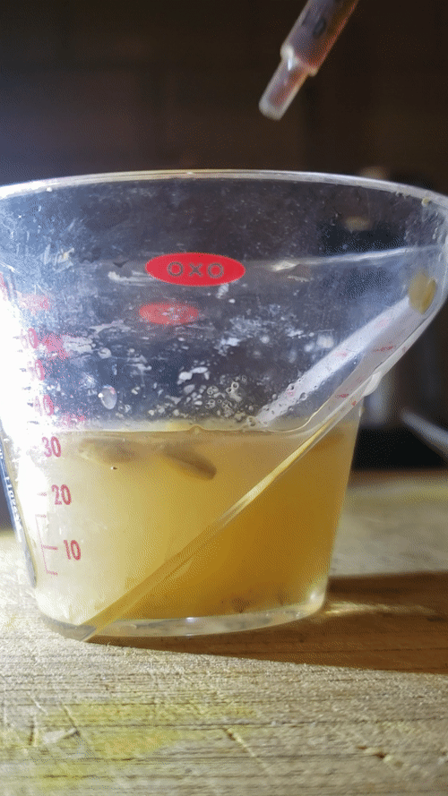 This is important; it means that rhyzopus has worked hard, and there's no free starch left, at least in the liquid. There might still be a little left in the solids, but can't be much. This is consistent with what I read on various forums/subreddits.